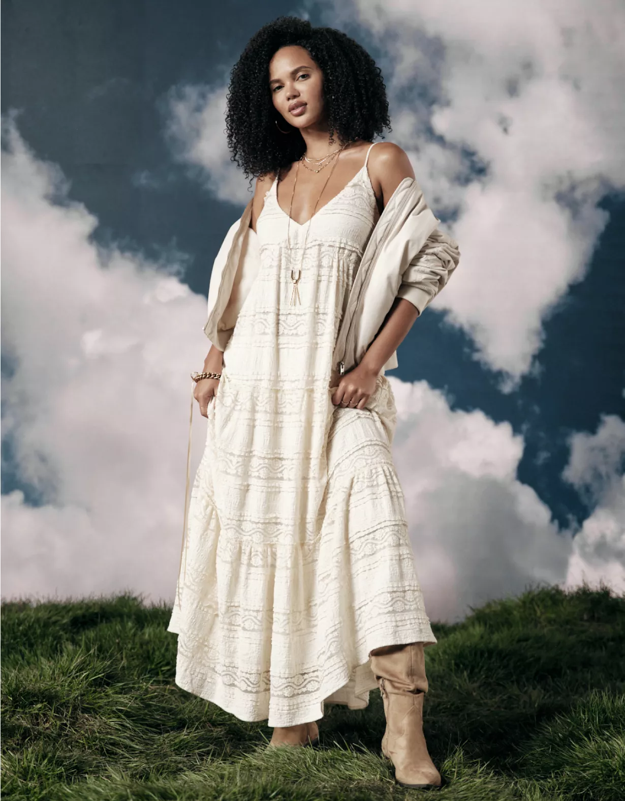 • A sleek, elevated dress with a modern flair, featuring a tiered skirt.