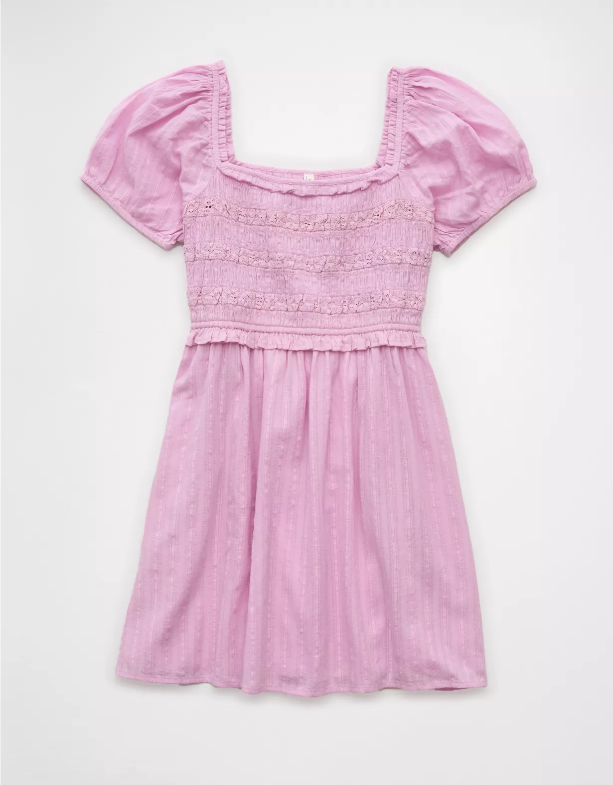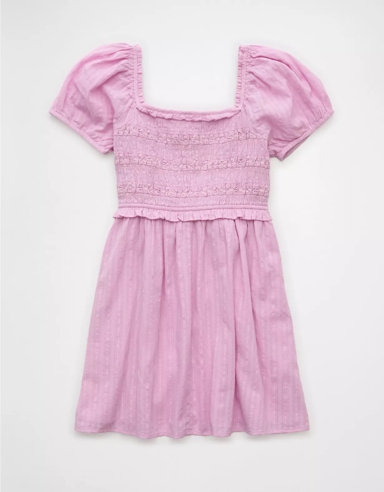 • Smocked bodice with lace inset details