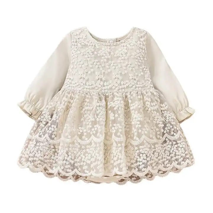Delicate lace details adorn the bodice, adding a touch of grace and sophistication to the ensemble. The dress is designed to captivate hearts with its charming simplicity, while the long sleeves provide warmth and comfort during cooler days. Whether it's a special occasion or simply a day of exploring, this dress is perfect for creating adorable memories.