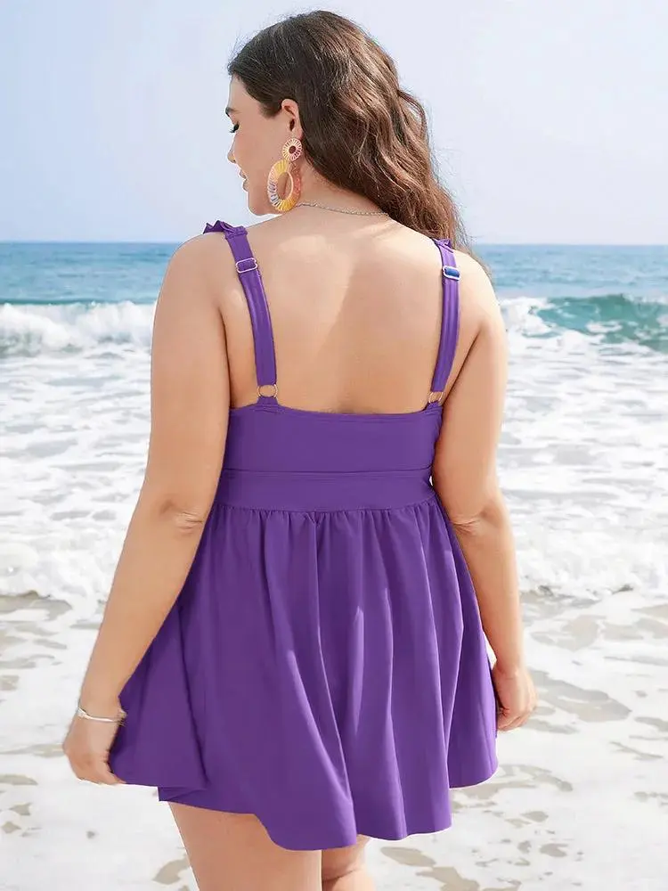 • Ruffle Trim Adjustable Straps Gathered Sculpt Waist Swim Dress